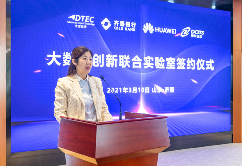 齐鲁银行副行长葛萍女士在“大数据创新联合实验室”揭幕仪式致辞中表示,齐鲁银行在数字化转型开展的大潮中,始终坚持以科技手段支撑“服务地方经济、服务中小企业、服务城镇居民”的业务开展目标,将科技赋能作为创新开展的重要驱动力,将数字化转型纳入全行开展战略规划,并确定了“业务线上化、服务场景化、决策智能化、系统平台化、科技敏捷化”的数字化转型目标。期望大数据创新联合实验室将成为连接齐鲁银行与大数据研发企业及研究组织的平台,为全行业务开展和数字化转型注入新的动能,打造成省内,乃至全国中小银行大数据生态合作的典范。